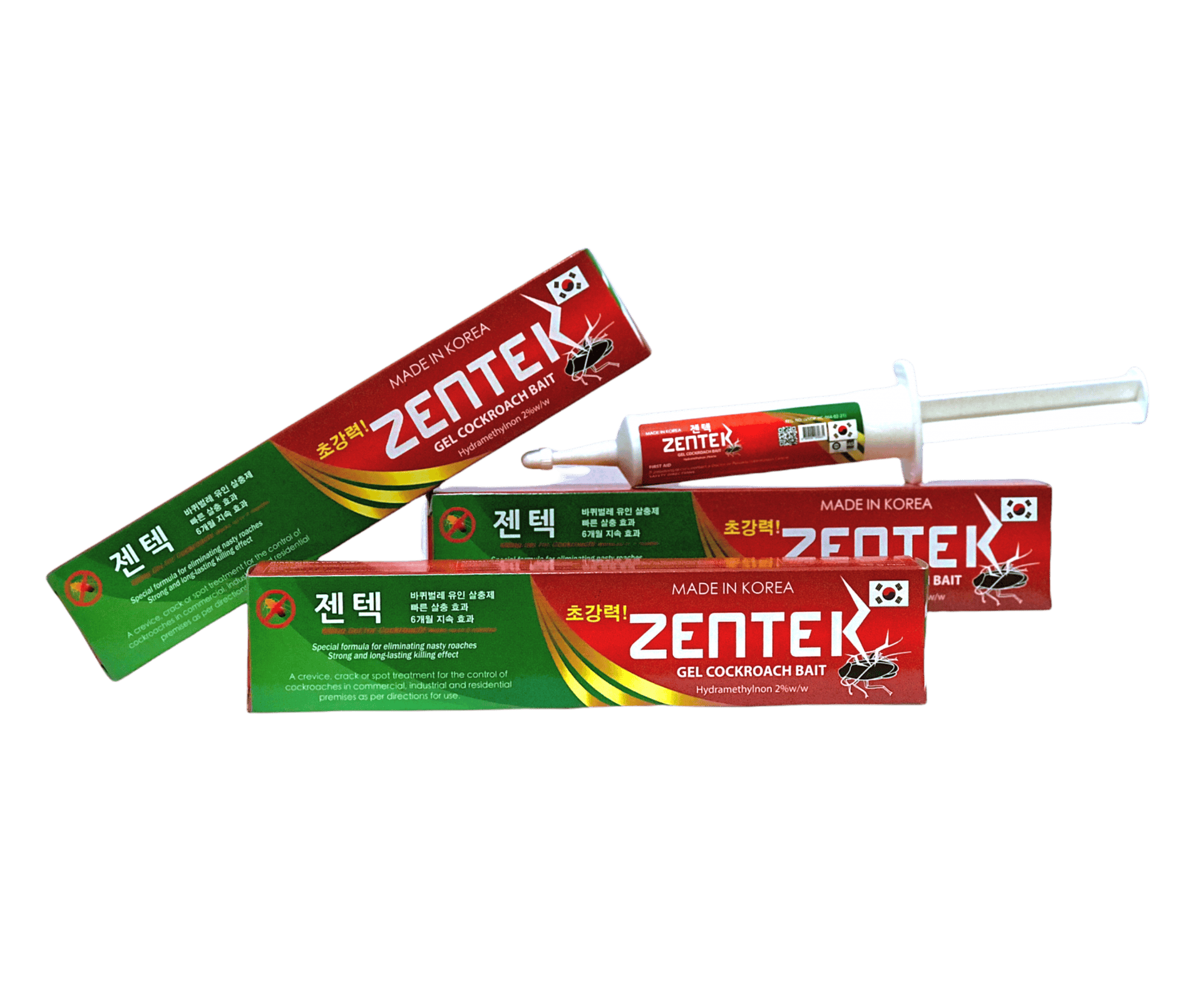 - Zentek mùi hương đặc trưng rất cuốn hút gián và dễ sử dụng, trong bả có chất dẫn dụ côn trùng nên có thể diệt gián rất hiệu quả. Sử dụng bả diệt gián này đặt ở những nơi gián thường xuyên xuất hiện như nơi gần nguồn thức ăn, tối và ẩm ướt, đặt vào những khe kẽ chân tường hoặc tủ bếp bằng hạt đậu nhỏ. Vì có chất dẫn dụ nên gián sẽ kéo nhau đến và ăn, và lây nhiễm nhau (domino) và chết.